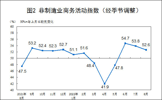 3、 China ComprehensivePMIOperation status of output index 8Month, comprehensivePMIThe output index is51.7%, down from last month0.8A percentage point, still above the critical point, indicates that the overall production and operation of Chinese enterprises continue to recover and develop.