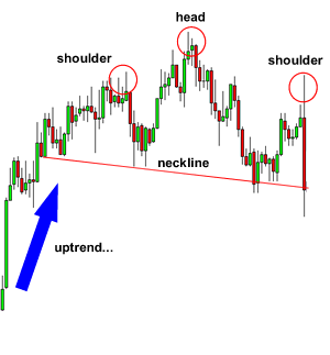 头肩顶头肩顶也是一趋势反转形态的一种。 该形态由顶部(Left shoulder), followed by a higher top(head)以及另一个较低的顶部(Right shoulder)所组成。价格在上冲失败向下回落时形成的两个地点基本上处在同一水平线上,这一水平线就是我们通常所说的颈线位。当价格第三次上冲失败时,这根颈线就会被击破。于是,头肩顶形态正式宣告形成。 在这一例子中,我们能够很轻易的看到头肩顶形态。 在上升途中出现了3个峰值,这3个峰值分别称为左肩、头部和右肩。从图形上看左肩、右肩的最高点基本相同,而头部最高点比左肩、右肩最高点要高。 随着头肩顶形态的形成,我们能够在颈线位下方设置自设停损单(stop entry order)。 我们同时能够通过头肩顶形态来设置获利目标。方法是测算出头部顶点到颈线位的垂直距离,这一段距离大约等于价格跌破颈线位后可能运行的距离。 如图所示,你能够看到,一旦价格跌破颈线位,下跌幅度至少等于头部顶点到颈线位的垂直距离。 我们知道你在心里嘀咕,“价格在触及回落目标后还在走低。” 我们的建议是,“不要贪婪!” Head, shoulder, and floor头肩底,顾名思义,也是头肩形态,只不过这次该形态和头肩顶刚好相反。 在下跌趋势中,先是形成一个低谷(Left shoulder),紧随而来的是一个更深的低谷(head),随后是一个较高的低谷(Right shoulder)。 如图,你能够看到一个典型的头肩底形态,随着该形态的形成,我们能够在颈线位上方设置自设停损单(stop entry order)。 我们这时计算获利目标的方法和头肩顶形态相同,先是测量出头部和颈线位的垂直距离,这一距离差不多等于价格突破颈线位后可能上涨的幅度。 如图所示,价格在突破颈线位后出现一轮漂亮的上升行情。 如果价格达到你的获利目标,你会为此而欢欣鼓舞。不过,这里我们还要告诉你一些其他的交易管理技能,比如,你可以在达到获利目标后锁定部分获利,同时继续持有部分仓位,以防价格可能继续朝着之前的方向运动。 你将在随后的课程中学到这方面相关内容。 |